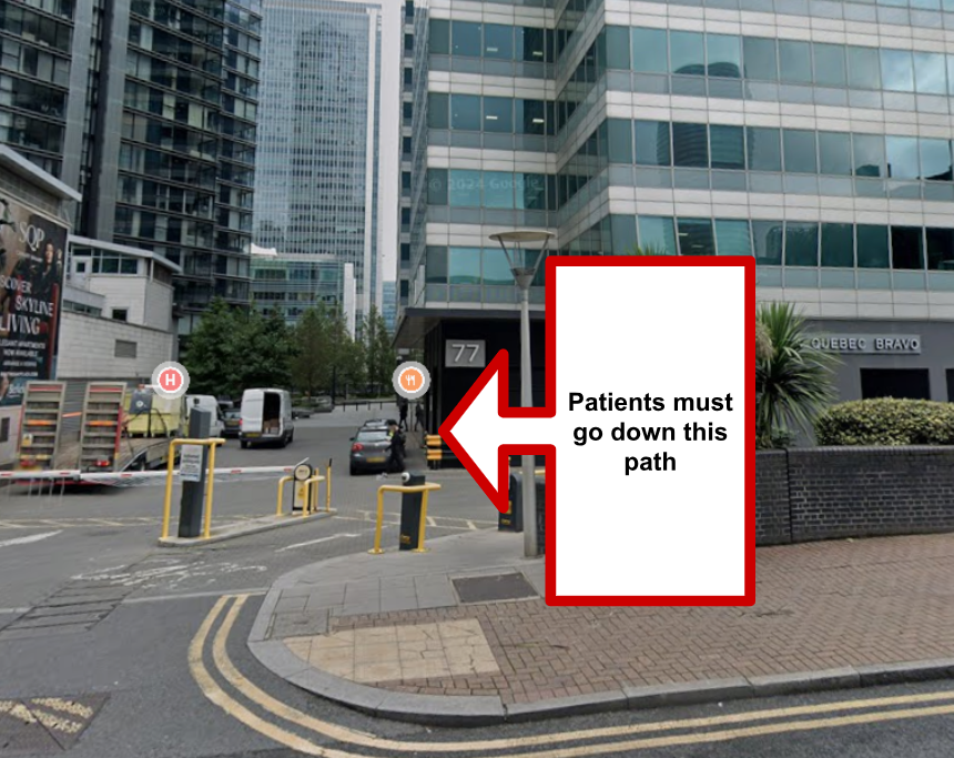 The closest station to the clinic is South Quay DLR Station which is approximately a 2 minute walk away. Canary Wharf Station (Jubilee & Elizabeth Lines) is approximately 4–6 minute walk away.